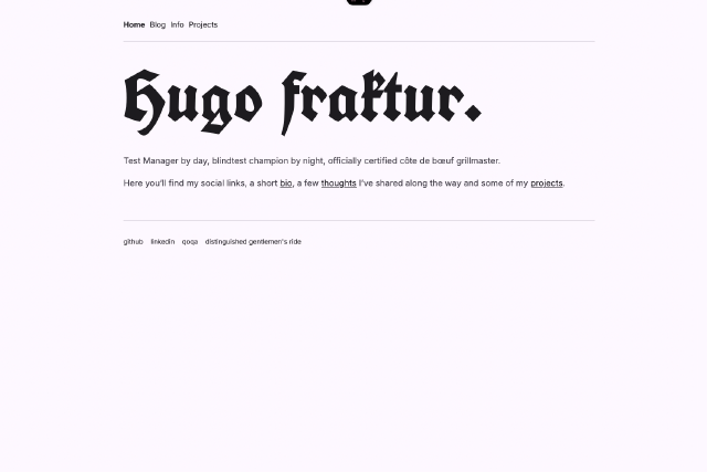 A clean, modern Hugo theme featuring mixed Fraktur/Inter typography. Built for readability, elegance, and performance with no pagination or taxonomy bloat.
