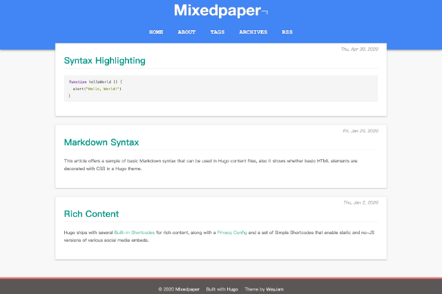 A simple Hugo theme for writers and bloggers.